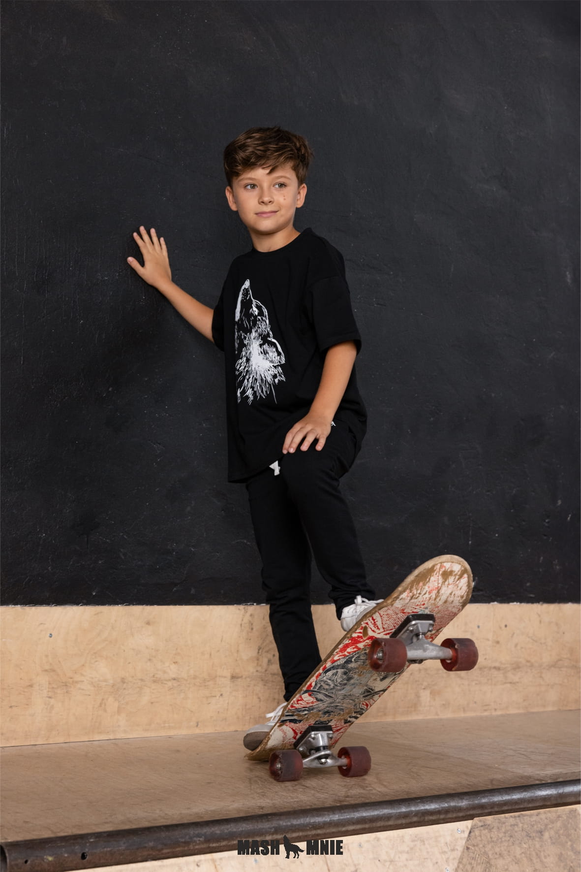 Czarny t-shirt z wilkiem to idealna propozycja dla wielbicieli mody i wygody. Modny t-shirt dziecięcy powstał przez polską markę Mash MNIE, co gwarantuje wysoką jakość wykonania z dbałością o szczegóły.