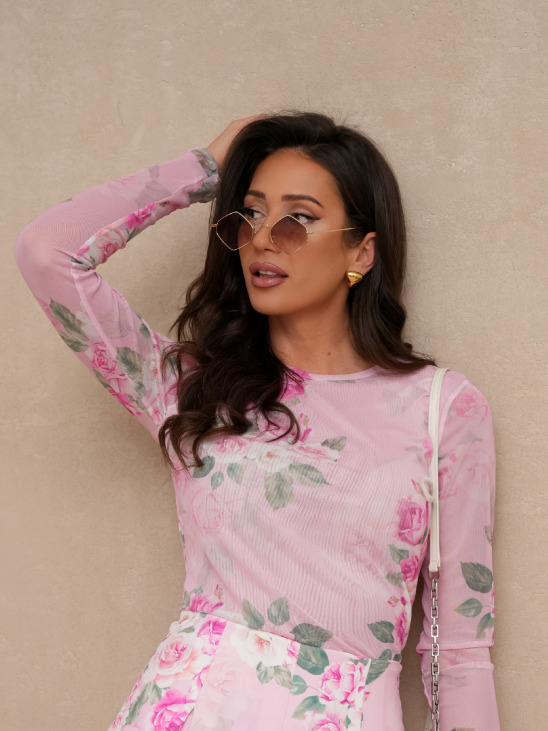 Tiulowa bluzka damska z siateczki różowa róże Blake Fresia LaBalancia