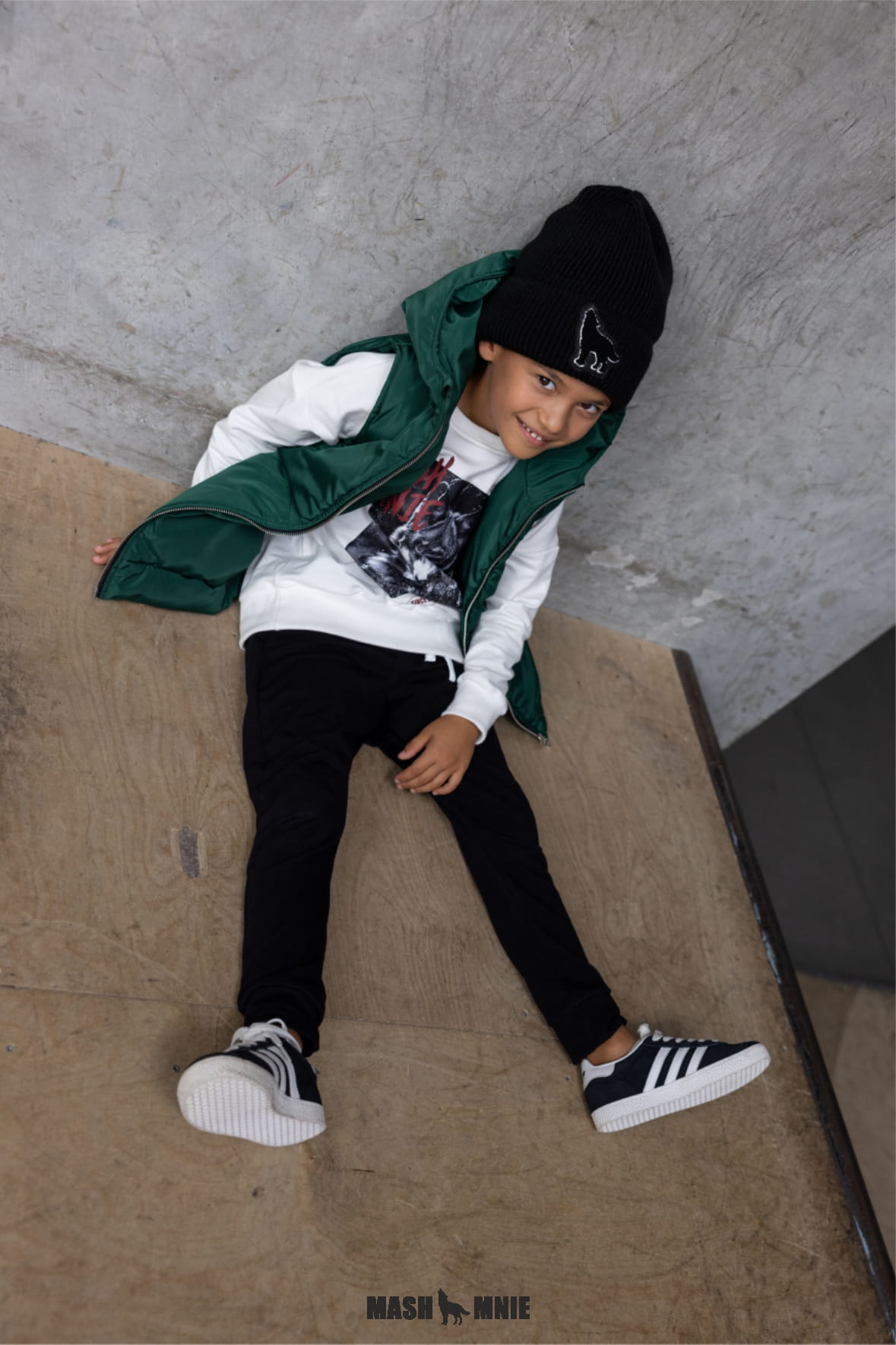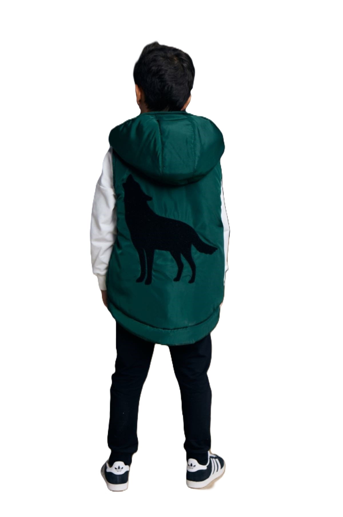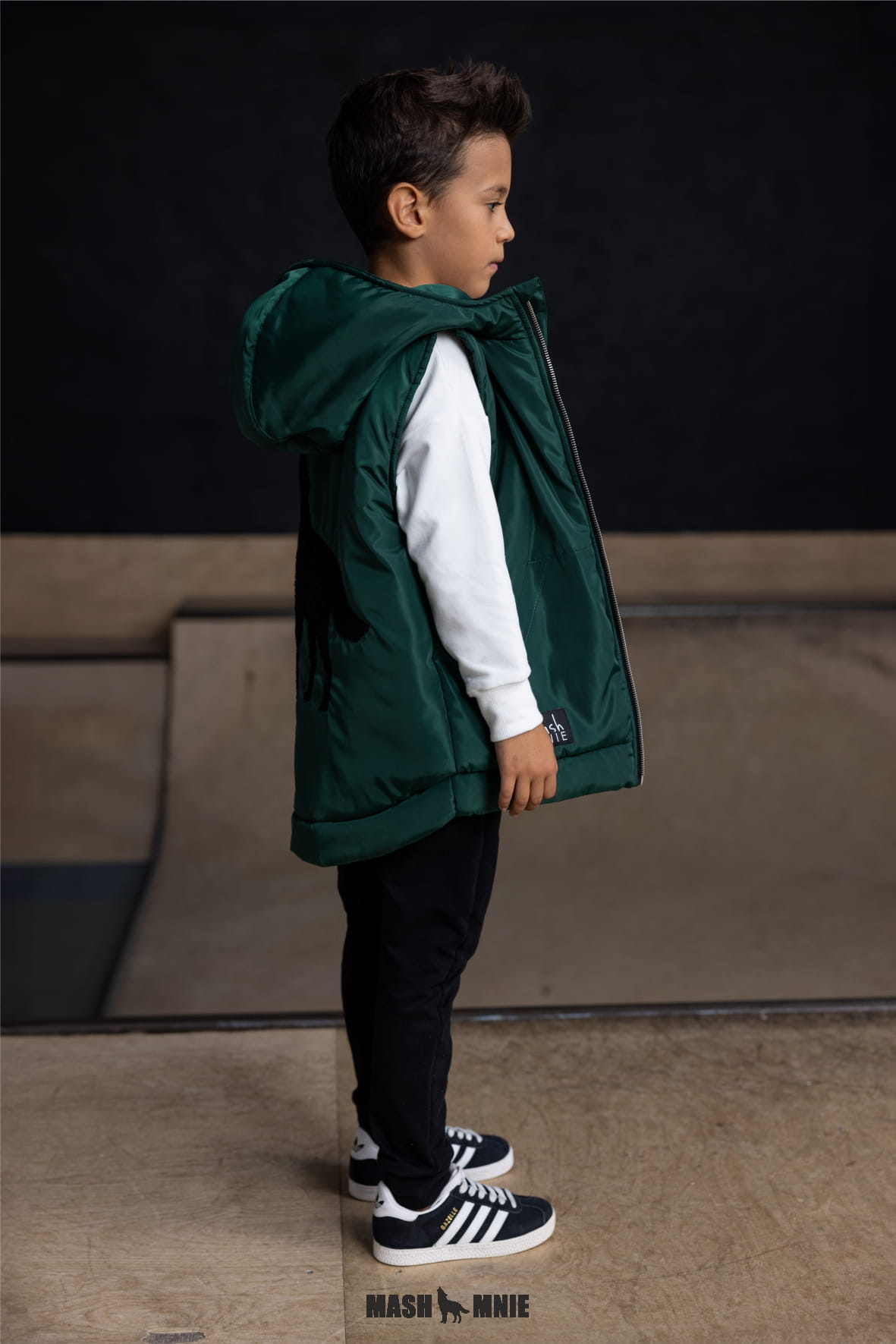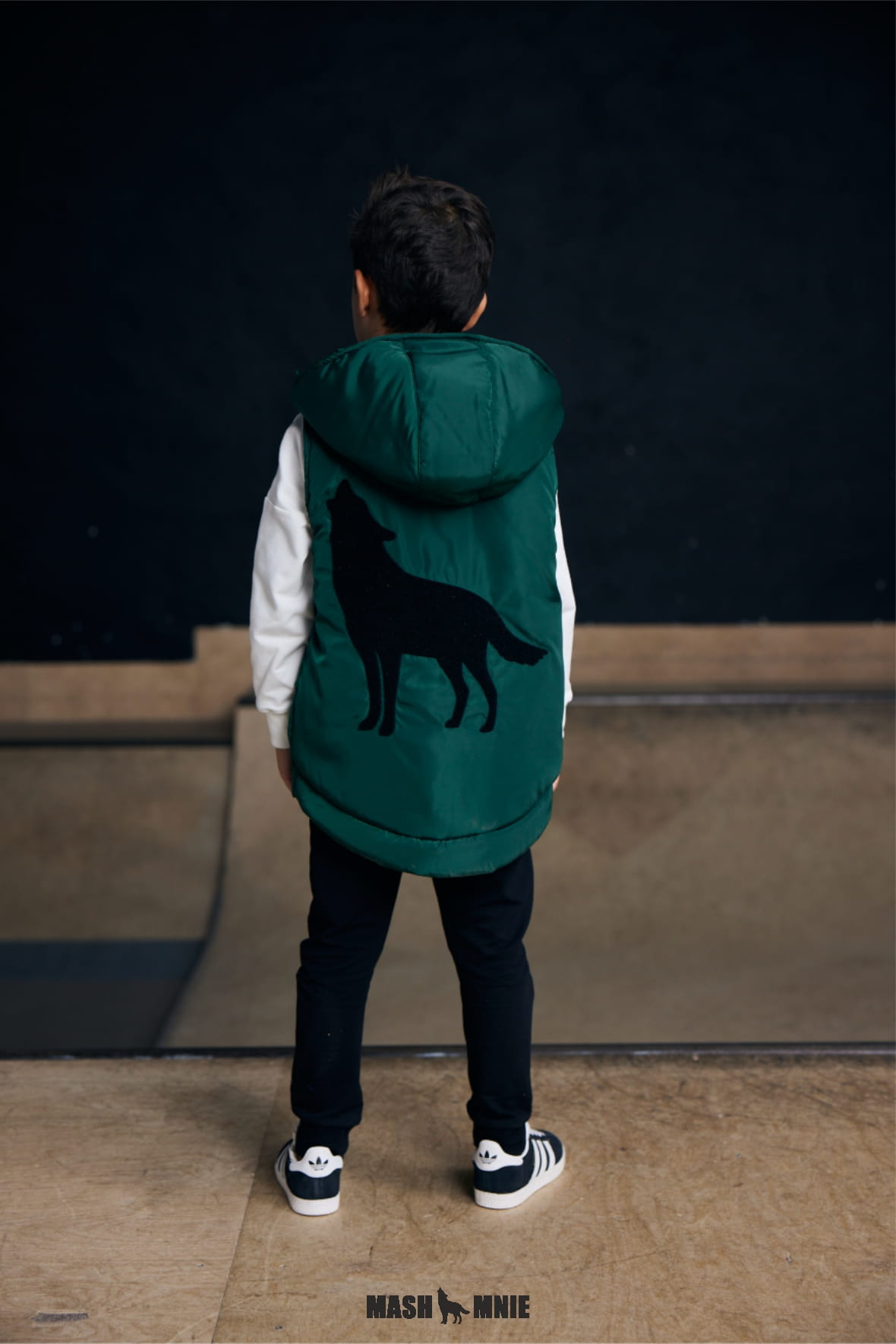 Zielona kamizelka z kapturem i wilkiem Mash MNIE